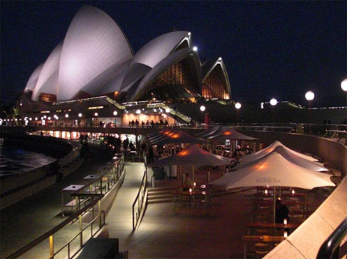 夕食は、オペラハウスと海が臨める外で(写真右下のようなトコロ)。冬なので若干寒かったですが、前述したように、シドニーは意外と寒くなかったので許容範囲。ここでカンガルーの肉とか食べました。